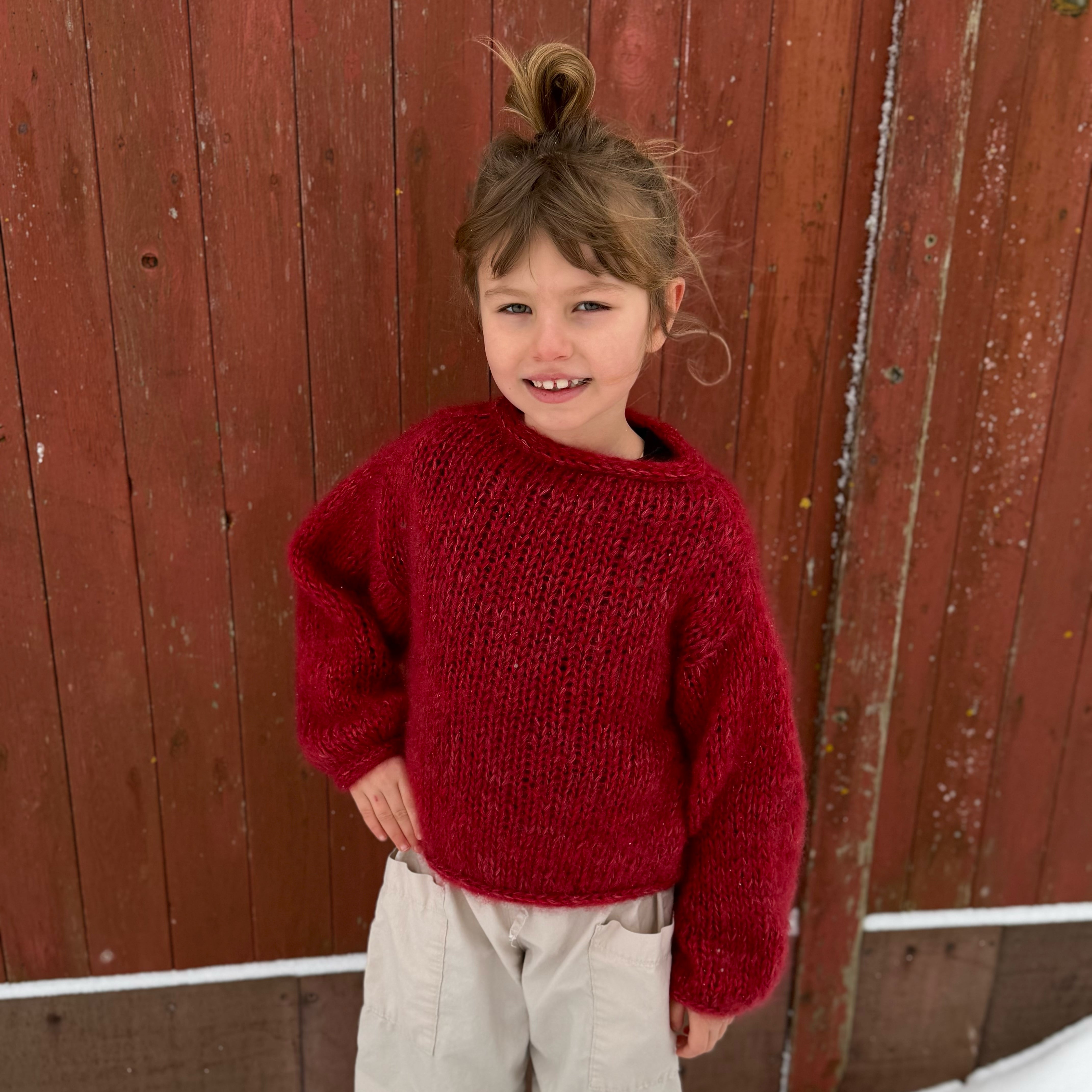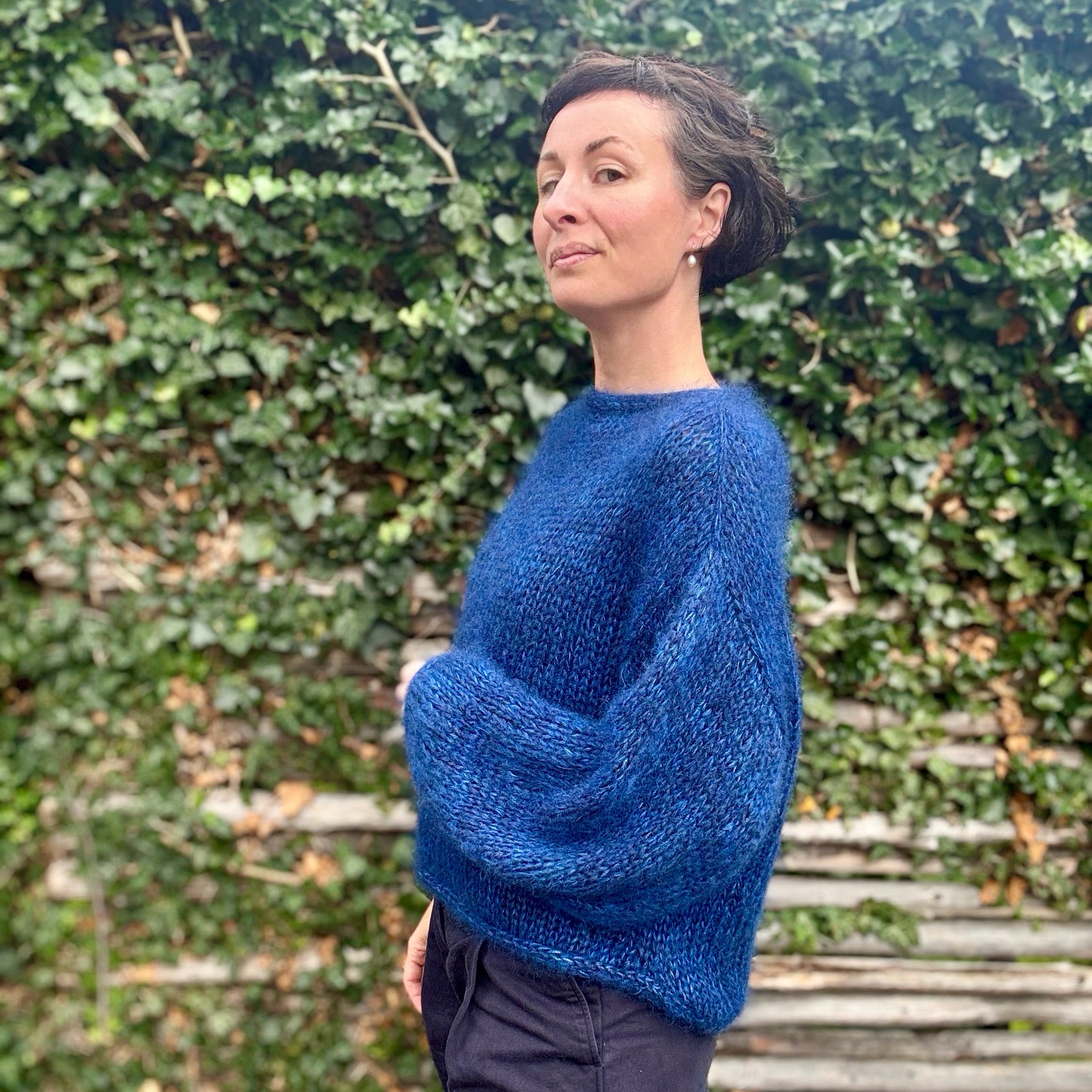 ‘Mohair Crush Sweater’ er en let og luftig sweater, der strikkes oppefra og ned i seks tråde glatstrikket mohair, hvilket giver et blødt og luksuriøst udtryk. Sweateren har en oversized pasform, med brede luftige ærmer, som gør den både komfortabel og stilfuld. Den er begyndervenlig, og hurtig at strikke på pind 10 mm.