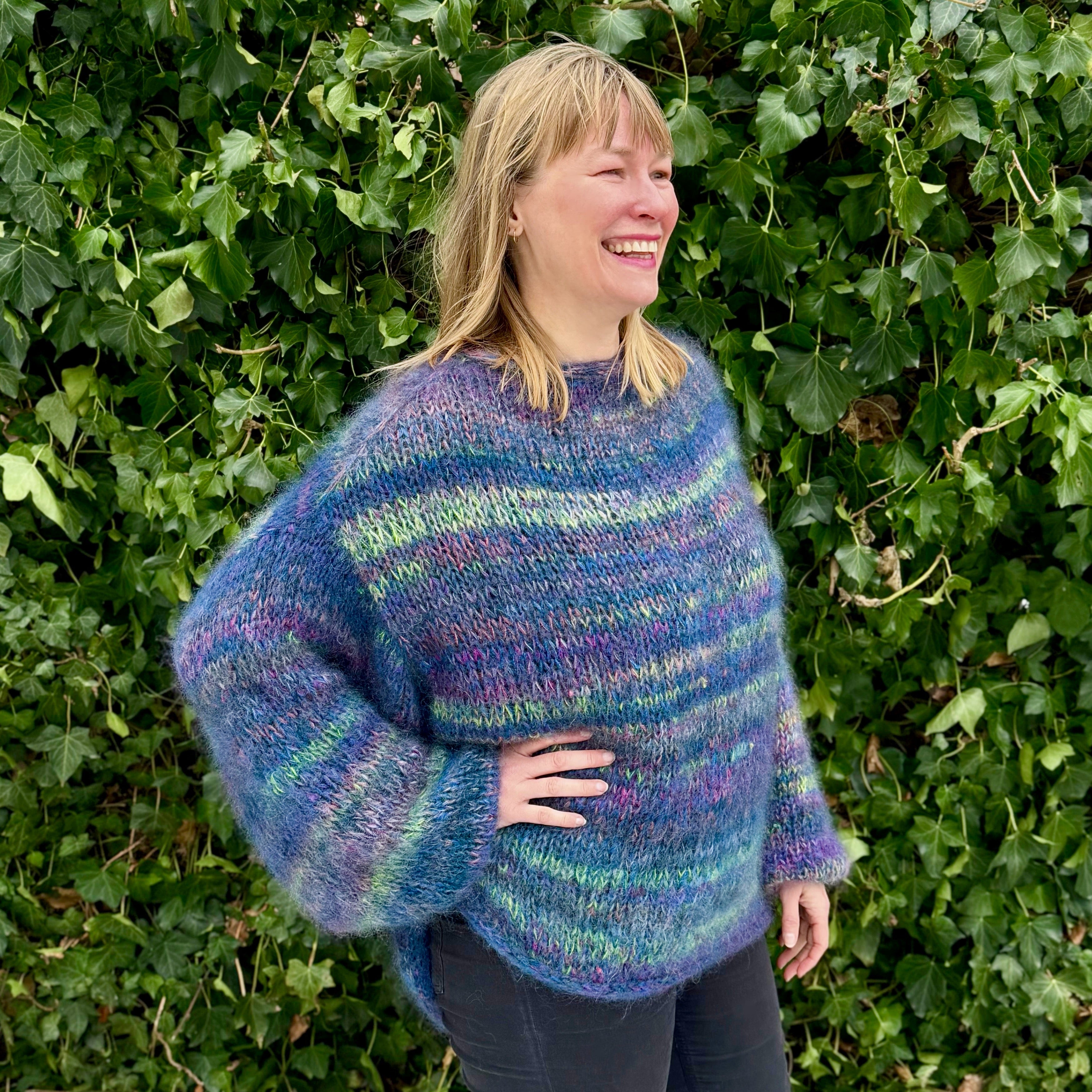 Sværhedsgrad: Let øvet/øvet - en glatstrikket sweater i 6 tråde mohair, med udtagninger til saddelskuldre, i-cordkanter og leg med farver. Perfekt for strikkeren, der vil udfordre sig selv.
