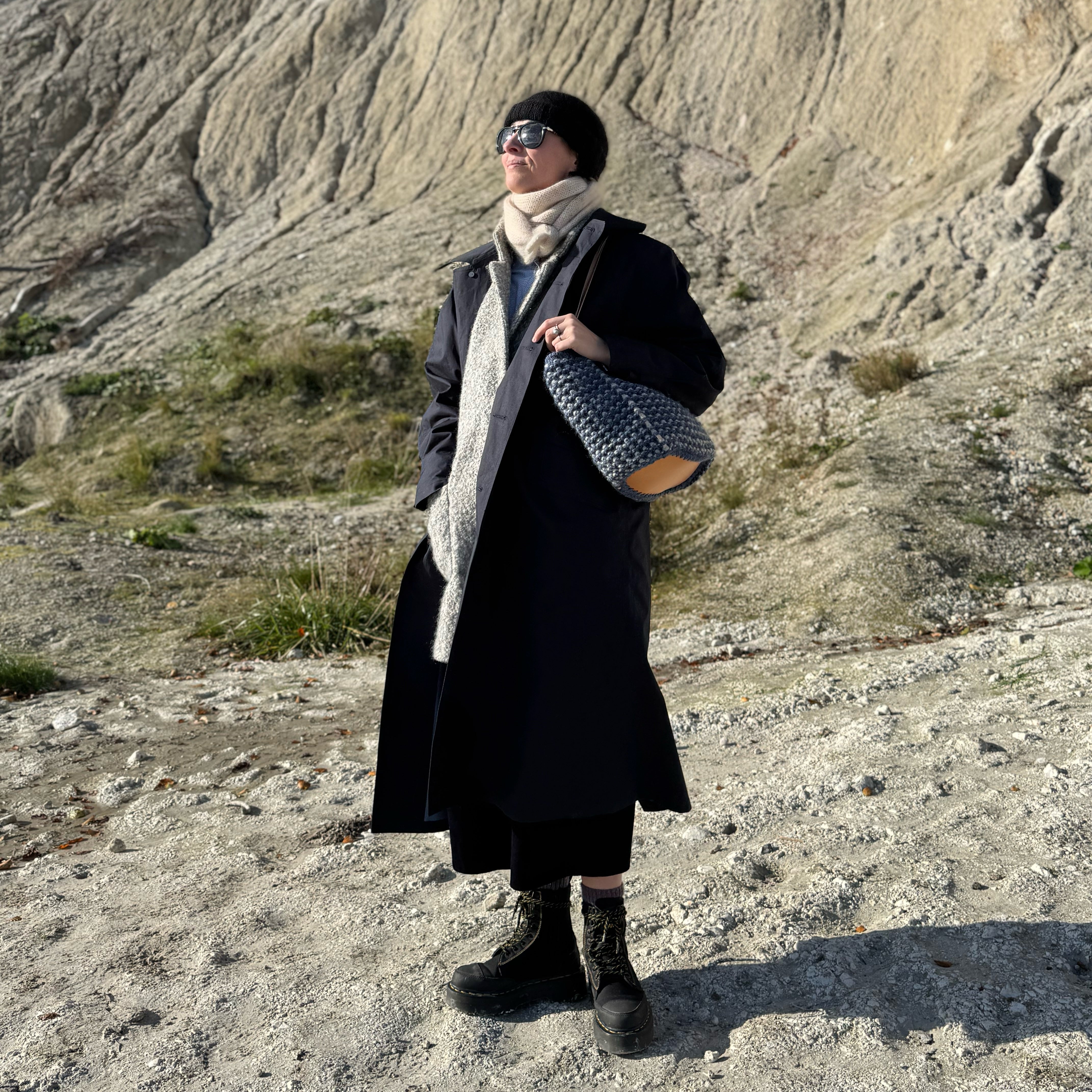 Taskebunden er lavet i kraftigt, vegetabilsk garvet læder og måler ca. 25 x 12 cm. Den er forsynet med huller hele vejen rundt, så maskerne kan slås op direkte omkring rundpinden. Bunden giver tasken et fast og formstærkt udgangspunkt og bidrager til en holdbar finish.